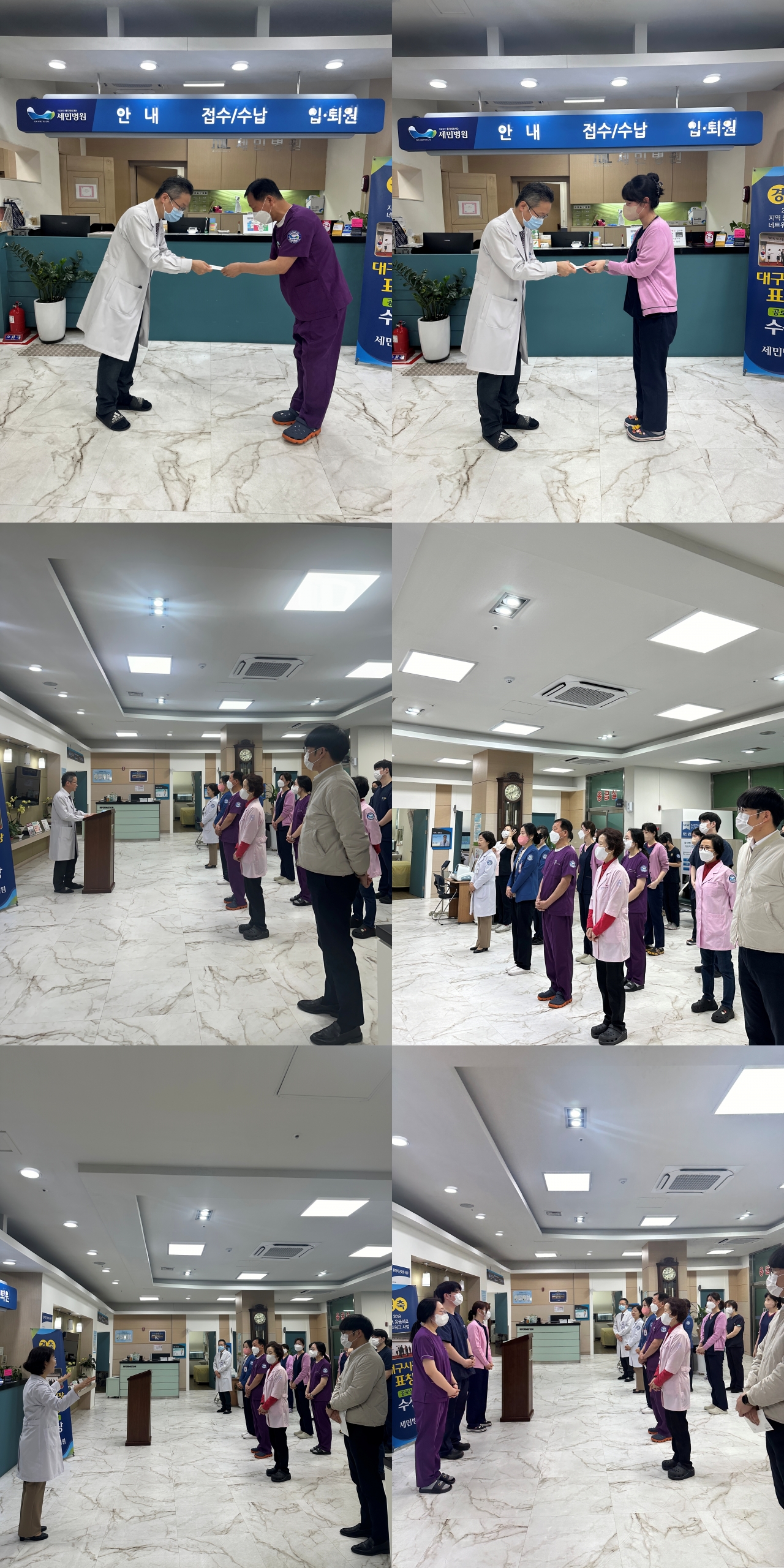 2024.04.01 월례회 및 감염관리실 신민아 선생님 주관으로 개최한 건강증진프로그램 (3.18~3.31) 시상식을 실시했습니다.