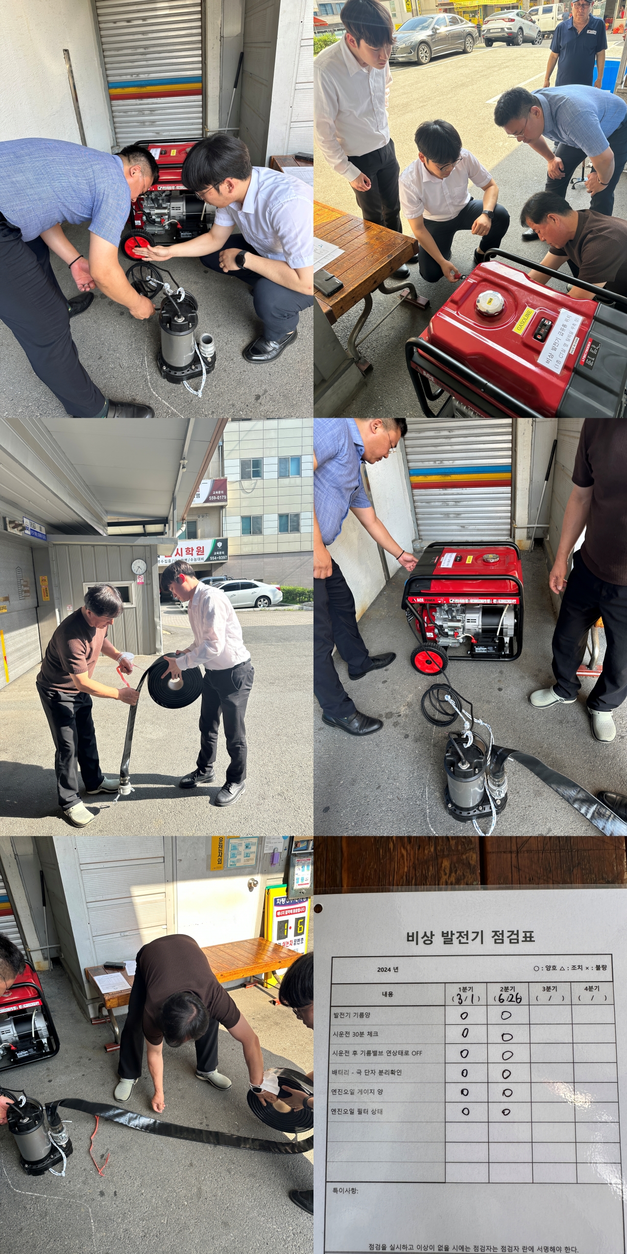 장마철 수해 대비 발전기 및 배수 펌프 시운전을 실시했습니다.