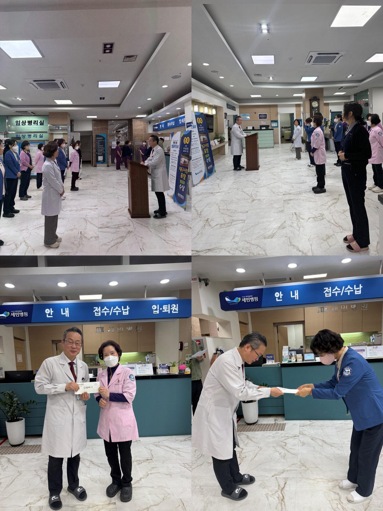 우수사원 : 영양실 김옥순 선생님, 재활치료실 마준영 선생님, 재활치료실 이종원 선생님