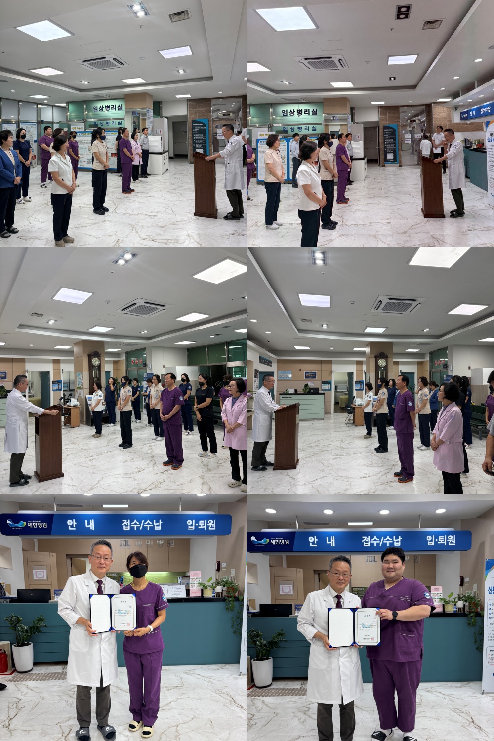 우수사원 : 5병동 하정민 선생님, 재활치료실 황일용 선생님, 재활치료실 안창숙 선생님
