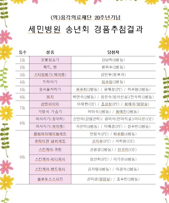 저희 세민병원에서는 총 33명의 당첨자가 나왔습니다.