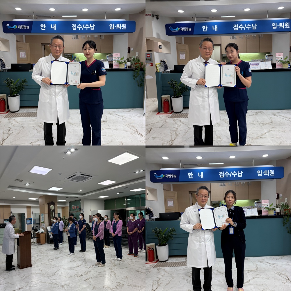 우수사원 : 원무과 정은정 계장님, 임상병리실 김은빈 주임님, 방사선실 장은숙 선생님
