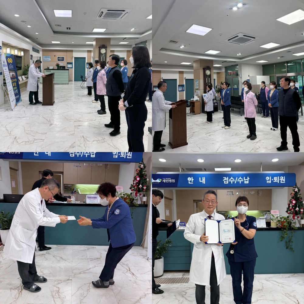 우수사원 : 6병동 곽현숙 선생님, 재활치료실 김민지 선생님, 3병동 정복실 선생님